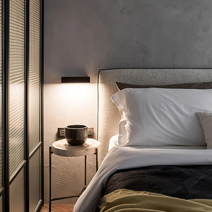 The Mumu Black LED wall light is a luxurious expression of sleek, modern design. Crafted with timeless perfection, this wall light features a unique swivel head that rotates 160 degrees. Its blend of modern aluminium and organic wooden walnut elements, all rendered in a silky, luxurious black finish. And with LED lighting, it's ideal for any sophisticated, tasteful living space.
