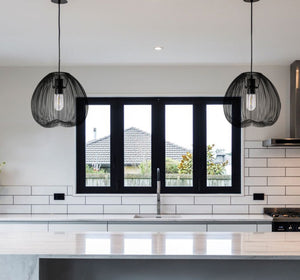 Create a luxurious atmosphere in your home with the Cage 25 Black Pendant. Its slender metal rods are crafted into an open structure, allowing ambient light to filter through its organic form. With stunning designer craftsmanship, the rods are beautifully draped together at the bottom, resembling velvet. Choose the right bulb for your lighting needs to achieve the perfect glow.