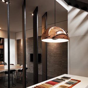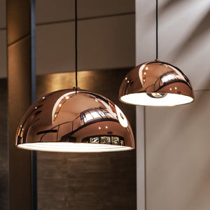 Discover the timeless elegance of the Dome Pendant 360 Copper. This sophisticated piece of lighting artistry features a centric-circled reflector, providing a softness of light, precision craftsmanship, and a stunning gloss white finish for a truly breathtaking effect. The perfect blend of classic lines and soft ambient light create a warm and inviting atmosphere in any home.